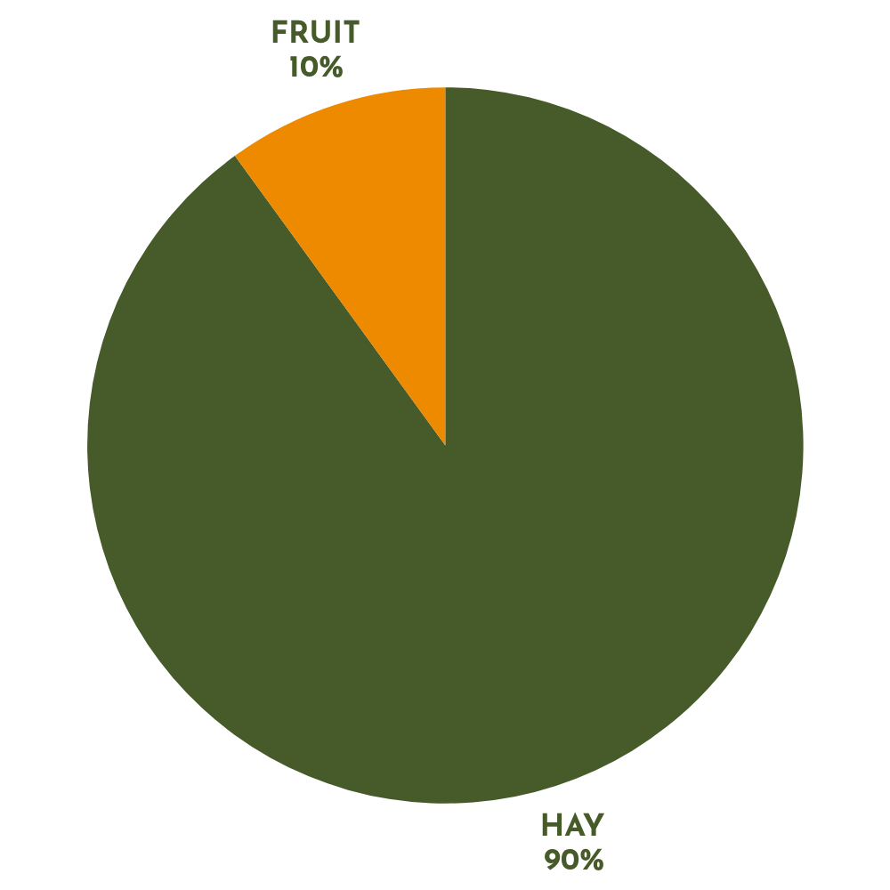 Your rabbit’s diet should still be 85–90% hay, with leafy greens as the primary fresh food. Fruit is best used as a treat or training reward.
